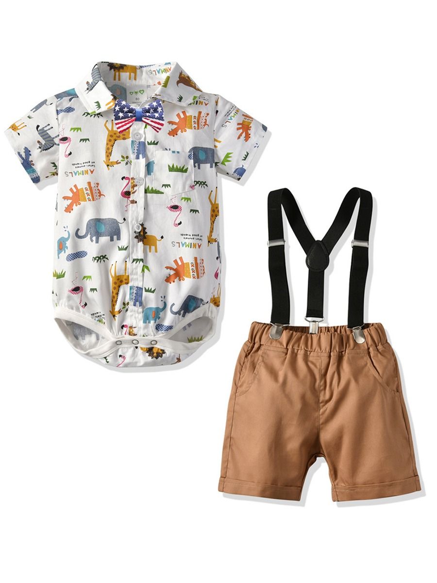 3 Piece Summer Baby Boys Clothing Outfits Set Short Sleeved Turn Down Collar Cartoon Animal Bodysuit Braces Shorts