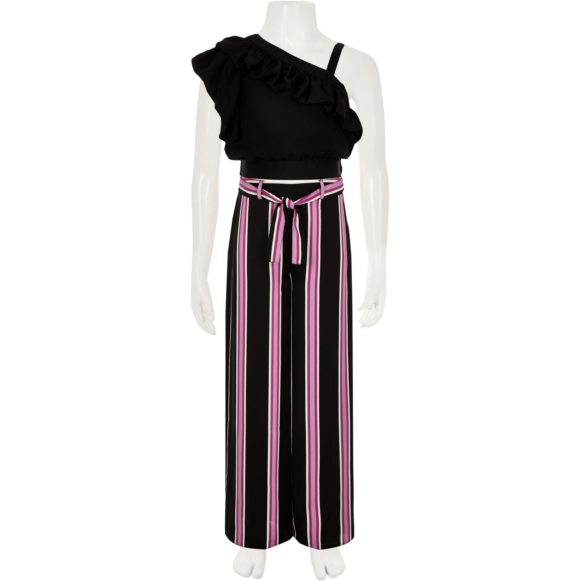River Island Girls Black Frill Crop Top And Trouser Outfit