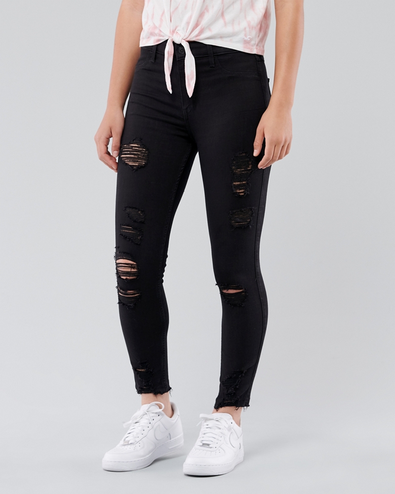 Skip to main content. Hollister destroyed black skinny jeans. Swapdotcom category kids apparel junior girls fashion.