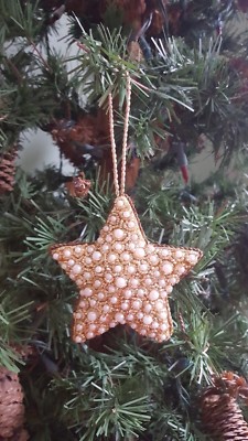 Vtg Star Tree Ornaments Beads Fabric Christmas Tree Set 6 3 Stars 3 Trees Ebay