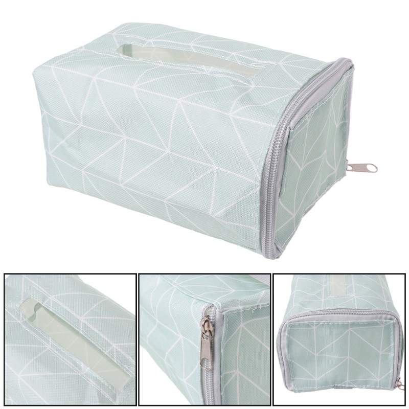 Cloth Facial Tissue Box Rectangular Napkin Holder With Belt Side Zipper Up Bag