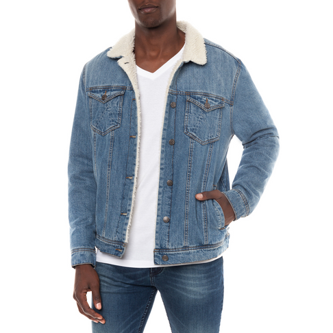 Redbat Men S Light Wash Sherpa Collar Denim Jacket