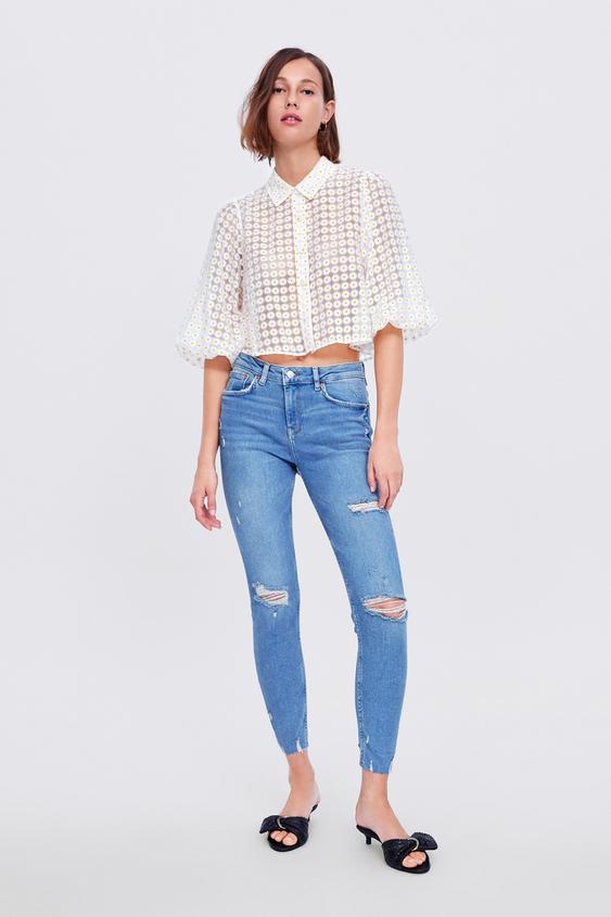 Z1975 high rise ripped jeans. Jeans could either be purchased already ripped or you could damage them yourself as long as the holes were big you could get away with having holes in your pants. Jeans zw premium 80s high waist fierce ink blue.