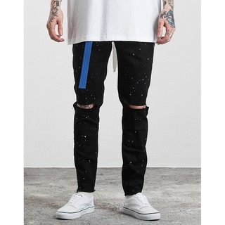 Men S Fashion Ink Printed Distressed Slim Fitted Skinny Jeans