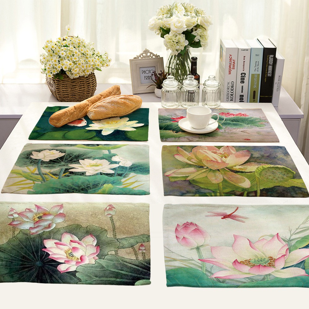 Lotus Oil Painting Printed Cotton And Linen Napkin Tablecloth Home Decoration