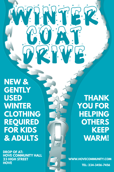 Download this winter coat drive charity poster template vector illustration now. Design your poster now so you can focus on organizing your charitys clothes drive. Customize the layouts to create unique designs for flyers postcards and posters.